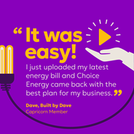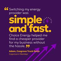 Capricorn has partnered with Choice Energy, a Preferred Supplier, to offer Members a no-cost energy broking service**. By simply uploading your latest energy bill, Choice Energy compares rates from our trusted panel of suppliers to find the best deal for your business. Plus, you’ll earn Rewards Points on all energy plans on your trade account!